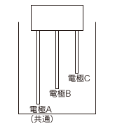 - 通常時、各電極間に導通はありません。(電極Aは、B、Cに対して共通の電極になっています)