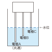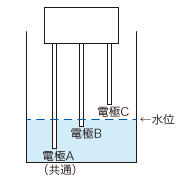 - この水位において、電極A-B及びA-C間が導通します(表示:冠水通行止)