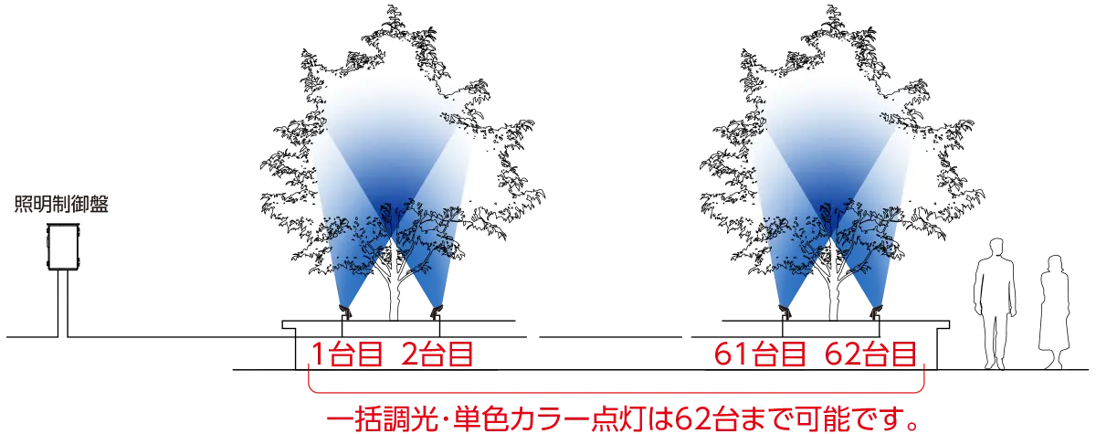 最大62台までの一括調光・単色カラー制御
