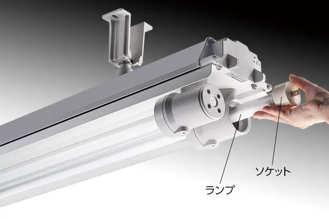 電源内蔵形直管LEDランプの採用により、LED電源の交換が容易でない防爆器具において、メンテナンスコストの大幅な削減が可能です。