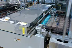 シリンジなどを入れて輸送するための容器であるネストタブをロボットを使用して除染する装置です。