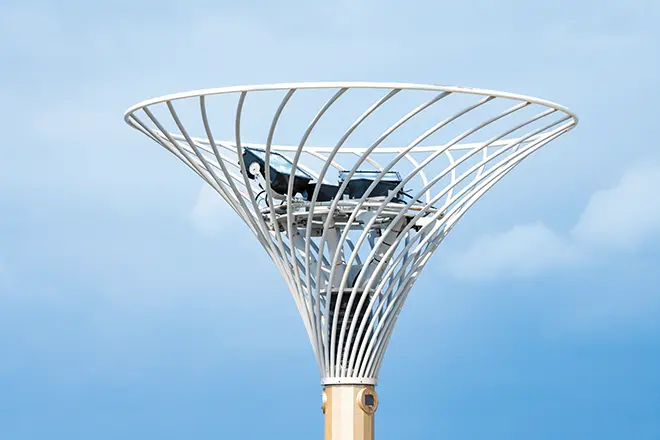 2025年に青森港は開港400周年を迎えます。これに伴い、ベイエリアのシンボルである青森ベイブリッジに注目が集まることが見込まれることから、青森県では2025年4月より主塔のライトアップを開始しました。ライトアップに先立ち、維持管理や環境負荷の低減を考慮し、投光器をLEDに更新する改修工事が実施され、多彩な色の光を自在に表現できるフルカラーLED投光器「レディオック フラッド フルカラー」をご採用いただきました。