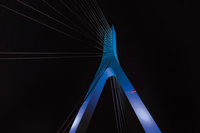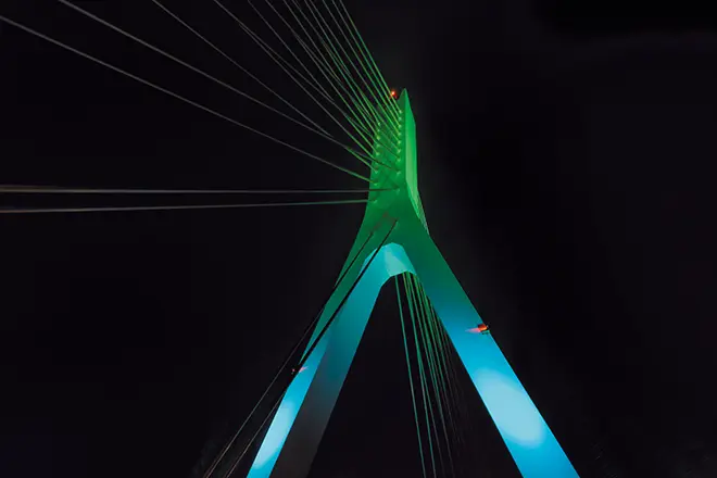 開港400年を迎える青森港のシンボル、青森ベイブリッジをより魅力的に照らし、潤いのある景観を演出