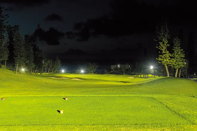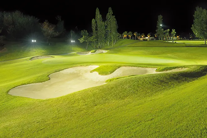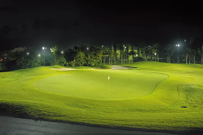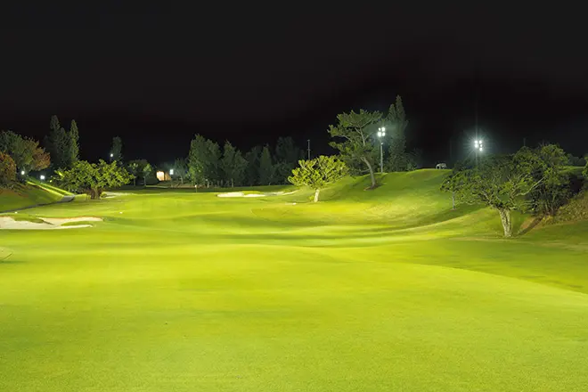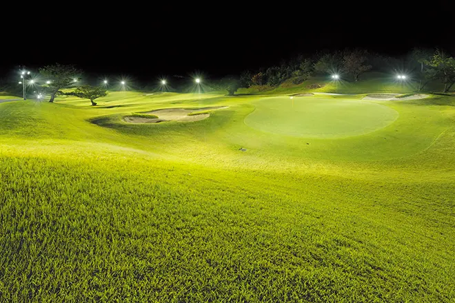 チャンピオンコース18ホールでナイタープレーを楽しめるゴルフコースを快適に照らすLED投光器