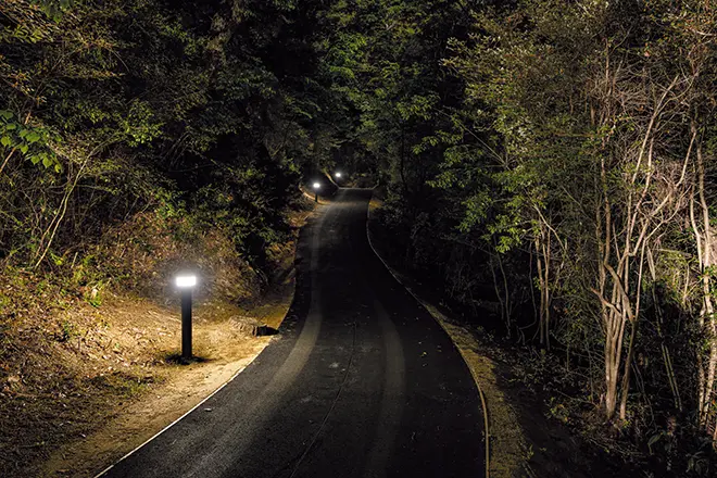 武庫ノ台ゴルフコースは、羽束山を中心とする北摂連山をのぞみ、三田平野を眼下に見下ろす最高のロケーションにある関西屈指のパブリックコースです。アウトコースは各ホールとも、松林などでセパレートされ、コース幅も十分にあるタフなホールが多く、インコースは正確なショットが要求される戦略性に富んだレイアウトで、上級者から初心者までお楽しみいただけます。武庫ノ台ゴルフコースでは、2025年3月より、ナイトゴルフの営業を開始しました。夜間照明設備については、コースを照らす照明としてLED投光器「レディオック フラッド アヴァン 400クラス」を設置いただくとともに、「レディオック フラッド ネオ フルカラー」を用いてのカラー演出、コース間には「レディオック レクト」、駐車場照明には「レディオック エリア トリカ-エル」などをご採用いただきました。