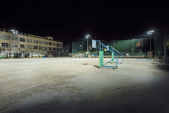 足立区では、生涯スポーツ・生涯学習活動の振興と地域に開かれた学校づくりの促進を図るため、学校運営上支障をきたさない範囲で小・中学校の施設を広く区民の皆さまに開放しており、同小学校も夜間校庭開放施設として指定されています。子どもから大人まで、さまざまな用途に利用される施設照明であることに留意し、設計照度も300ℓxと十分な明るさを確保しました。LEDに更新後は改修前に比べてとても明るくなったと同時に、光害及びグレアを抑制し良好な視環境とすることができたと考えています。