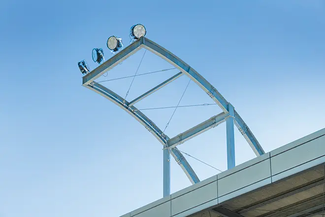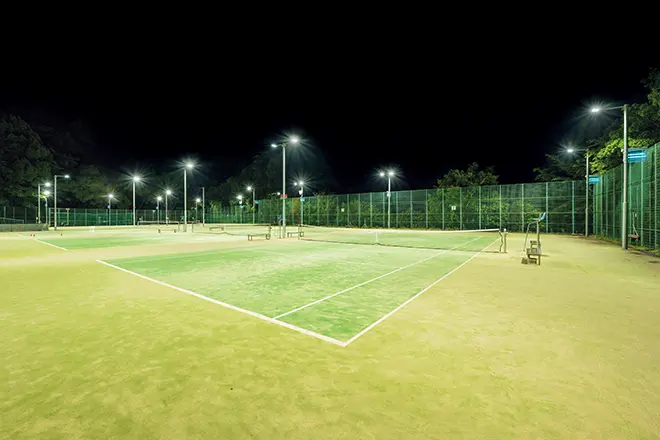 市民に親しまれる地域スポーツの拠点をLED化し、明るく快適なプレー環境を実現