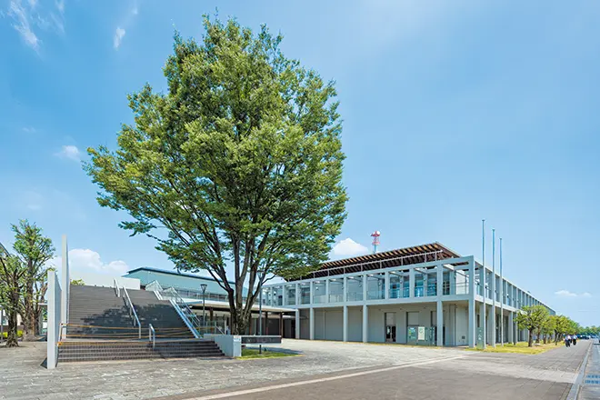 埼玉県立武道館は、埼玉の武道振興を担う拠点として、2003年にさいたま市(旧浦和市)から上尾市に移転して開館した県立の武道館です。県民が親しみやすく、身近に感じる「開かれた武道館」をコンセプトとし、主道場をはじめ、第一道場(畳)、第二道場(床)、弓道場、屋内・屋外相撲場、会議室など充実した設備を備えています。中小規模の大会から国体など大規模大会までの開催が可能で、武道だけでなく卓球、バレーボール、新体操など幅広いスポーツの練習・試合会場としても活用されています。建物は大屋根や木組みに伝統的な木造建築の意匠を取り入れ、太陽光や太陽熱などの自然エネルギーを積極的に活用した環境配慮型施設である点も特徴です。