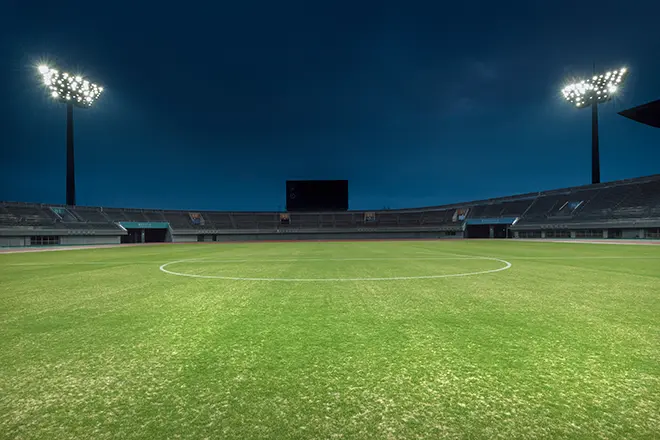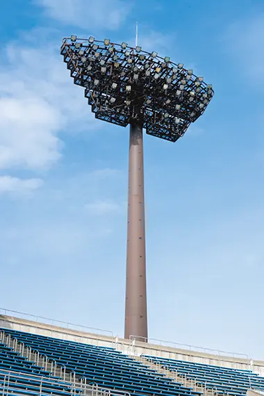 周辺環境に配慮した光害対策形のLED投光器に更新し、高次元のスポーツ照明環境を実現