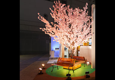 満開の桜の木を、新型ネオ 美vidタイプでライトアップし、色の再現性の確かさもご体感いただきました。