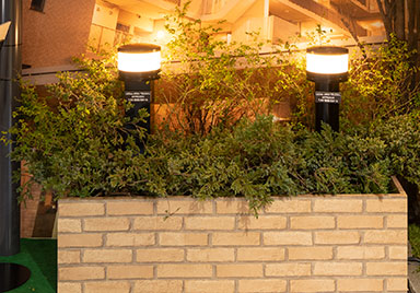 植え込みを模したディスプレイでは、簡易取り換えを体験いただけるように、灯具部分を取り外せるようにしてお見せしました。