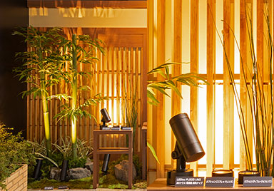 サイン照明やライトアップにはもちろん、商業施設の照明にもおすすめの器具なので、今回は店舗をイメージしたレイアウトでご覧いただきました。