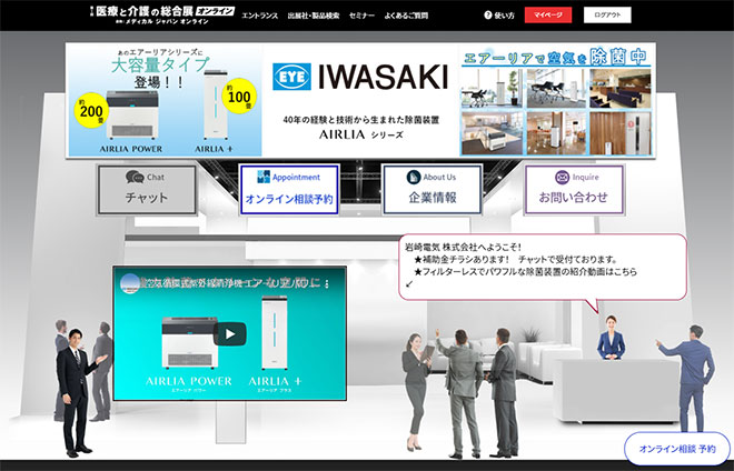 岩崎電気からは紫外線ランプで菌・ウイルスを除菌する空気循環式紫外線清浄機を出展し、医療・介護現場への安心をご提案いたします。