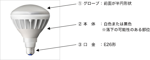 さて、弊社が2010(平成22)年12月から2013(平成25)年3月までに製造販売いたしましたLEDアイランプ18W、E26口金の下記製品におきましては、ダウンライト器具との組み合わせを不適合としておりますが、ダウンライト器具を含む放熱を妨げる形状の不適合器具との組み合わせによる使用温度上昇の影響によって、口金樹脂成型部で微小クラック(ひび割れ)が発生し、極めてまれにランプが不点灯・破損・落下する可能性のあることが判明しました。