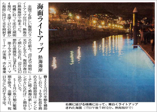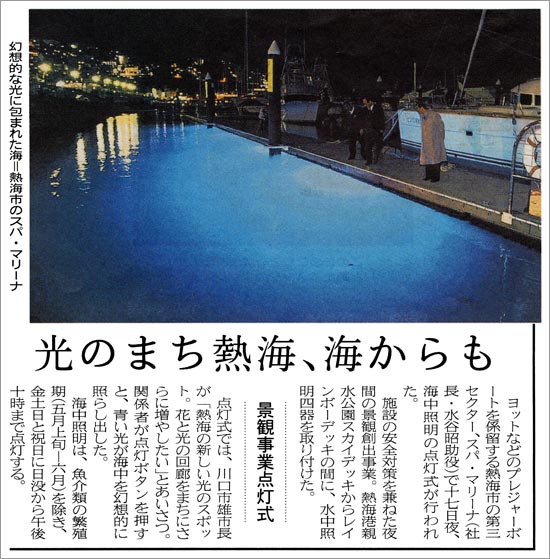 当社にて設計した青い海の魅力をさらに印象的に演出する海中照明は、新聞各紙に紹介されました。