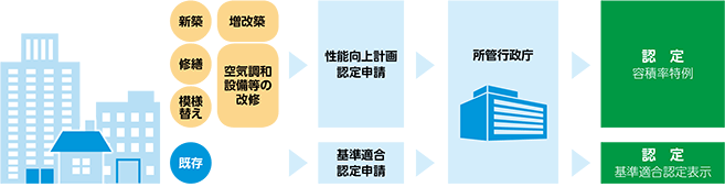 また、既存建築物については省エネ基準に適合していることの認定を建設地の所管行政庁により受けることができます。