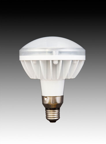 - LEDランプとすることで低消費電力及び長寿命化が可能となりますが、通常、放熱材としてアルミを使用するため、十分な光束(光の量)を実現しようとするとランプ自体が重くなり、さらにLEDの発熱が電気回路に影響を及ぼすなどの問題もあることから、LED化は困難な状況でした。