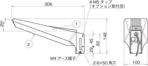 奥行き308mmと従来型蛍光ランプ20W×1灯用防犯灯(奥行き644mm)と比較して、約1/2以下のコンパクト設計。