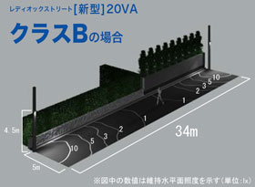 新開発の専用レンズにより高度な配光制御を行い、(公社)日本防犯設備協会 技術標準SES E 1901 (防犯灯の照度基準)「クラスB」を34m(※2)の取付間隔で達成。