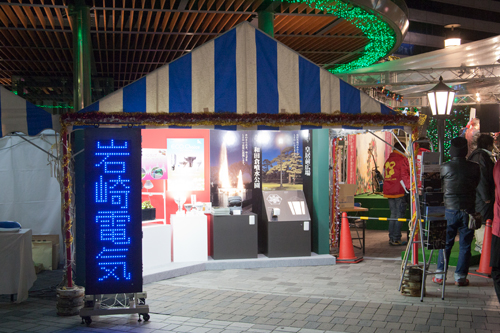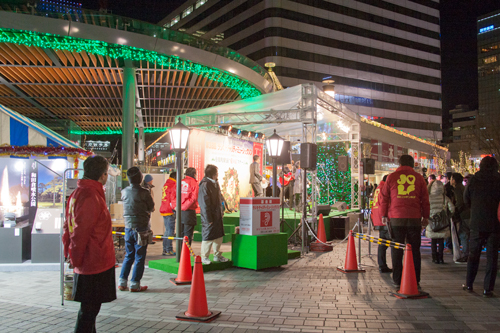 また、ブース横には公園や広場の夜間照明で活躍しているLED街路灯「LEDioc AREA 和風タイプ」を2灯を提供し、募金活動の場のランドマークとして、そして夜間にはあかりを灯して安全を確保するなど大いに活躍しました。