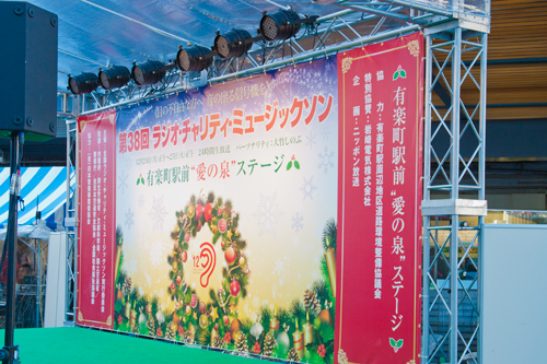 第38回目を迎える今回は、メインパーソナリティに大竹しのぶさんを迎え、有楽町駅前の特設会場「愛の泉ステージ」では、歌手のFairiesやお笑い芸人のナイツなどがライブを行い、会場を大いに盛り上げました。