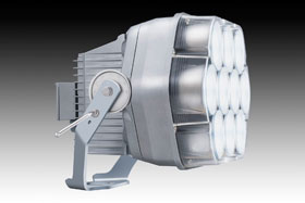 現在、ご好評いただいている「LEDioc FLOOD BLITZ」は、HIDランプ1000W〜400Wの代替LED投光器として、屋外スポーツ施設や大型建造物のライトアップ、屋外駐車場などのエリア照明用で多数ご採用いただいておりますが、今回の高出力・高効率化に伴い、定格光束を最大22%アップ、消費電力を約6%ダウン(200V時)させる事で、固有エネルギー消費効率を約10〜20ℓm/Wアップまで改善し、HID投光器のリニューアル需要に対する提案を強化いたします。