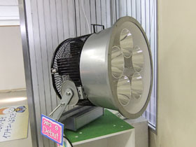 新製品「LEDioc LEDアイランプSP150W」(水銀ランプ300W相当)をわかりやすいように高天井灯のカットモデルで展示しました。