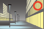 そのため、周辺が明るい環境では、照明器具のグレアを抑制し、かつ路面を効率良く照明することで、周辺の明るさを活かした「歩行者に周囲環境が見やすい」景観をつくり出します。