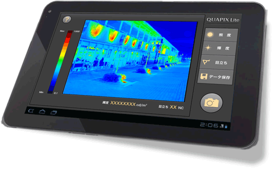 『QUAPIX Lite』では、これまで培った画像処理技術を活用し、手軽に「照度」「輝度」「目立ち」を測定することができます。