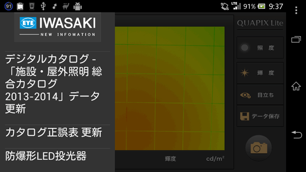 測定機能のほか、解析した画像をTwitterへ投稿することや、岩崎電気の関連商品、最新情報を見ることもできます。