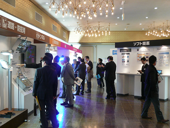 東北地方全域の主要代理店、電気工事店、設計事務所、コンサルタント、電力関係者、官公庁、工場、ゼネコンなどの電気設備担当者や施設管理者が多数訪れ、東日本大震災からの復興に必要とされる道路・トンネル、公園、スポーツ施設、工場・倉庫、商業施設などの照明への関心の高さが感じられました。