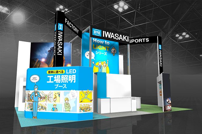 新たに発刊するカタログ「LED工場照明カタログ」、「LEDスポーツ施設照明カタログ」で提案する商品を実際に見ていただき、施設にあわせたLED照明を選定していただくようにブースを構成しています。
