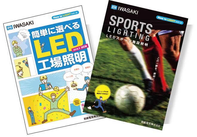 施設に合わせたLED照明器具の選び方をご提案するパンフレット「LED工場照明カタログ」、「LEDスポーツ施設照明カタログ」(3月8日刊行予定)は、岩崎電気営業所からもお取り寄せできます。