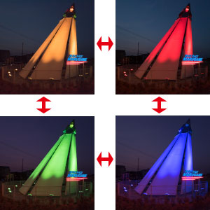 主流となりつつあるDMXによるフルカラーコントロールにより、カラーチェンジや光のグラデーション表現、複数台を一括制御することでの「光を動かす」演出など多彩な表現が可能になります。