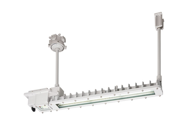 防爆エリアで使用可能な、蛍光灯代替非常用LED照明器具。