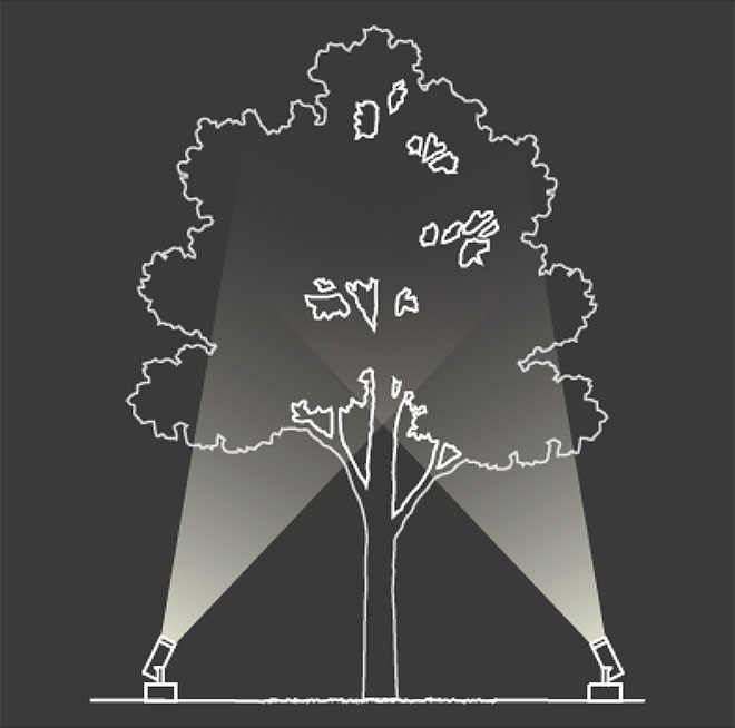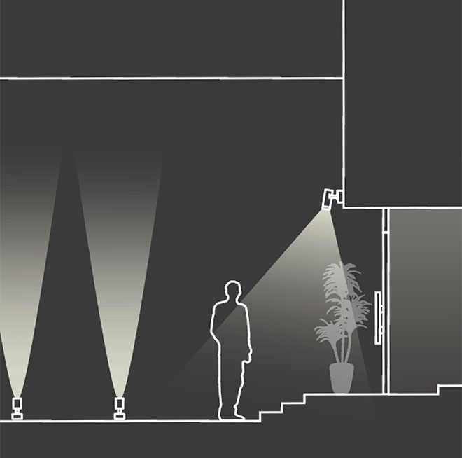 豊富なラインアップから用途にあわせて選択でき、調光制御にも対応(特注)。外構照明の効果的なスポット照明に最適です。