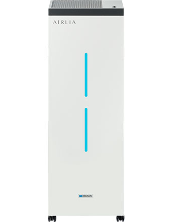 「エアーリア」は、紫外線ランプを内蔵し、器具内のファンで空気を循環させながら、強力な紫外線ランプにより室内を浮遊する菌やウイルスを不活化させる空気循環式紫外線清浄機です。