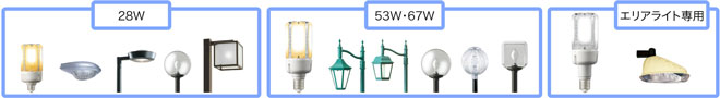 また、水銀ランプ100Wを代替可能な28W(E26口金形)に加え、高出力な53Wと67W(E39口金形、垂直点灯専用)を追加。
