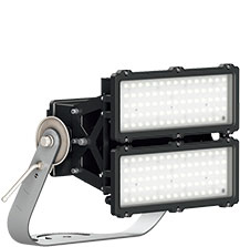 「レディオック フラッド アヴァン」は、軽量・コンパクトでハイパワー、スポーツ施設向けLED投光器において最高クラスの固有エネルギー消費効率166.2ℓm/W※1を誇る高効率化を実現。