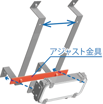 2点留めの軽量・コンパクト設計を実現、上下の取付寸法を既存器具と同寸法にしアジャスト金具不要で取り付けできます。