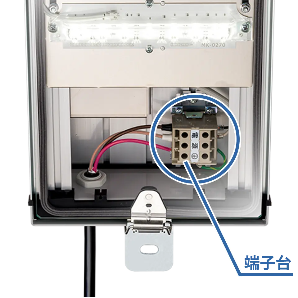 照明器具内に端子台を設け、既設ケーブルの有効利用を可能にしました。