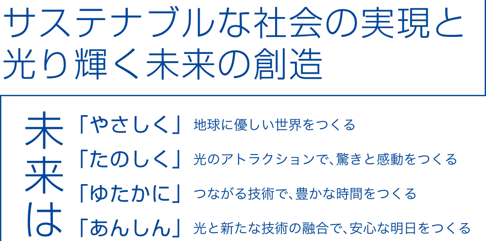 - 未来は「やさしく」地球に優しい世界をつくる。