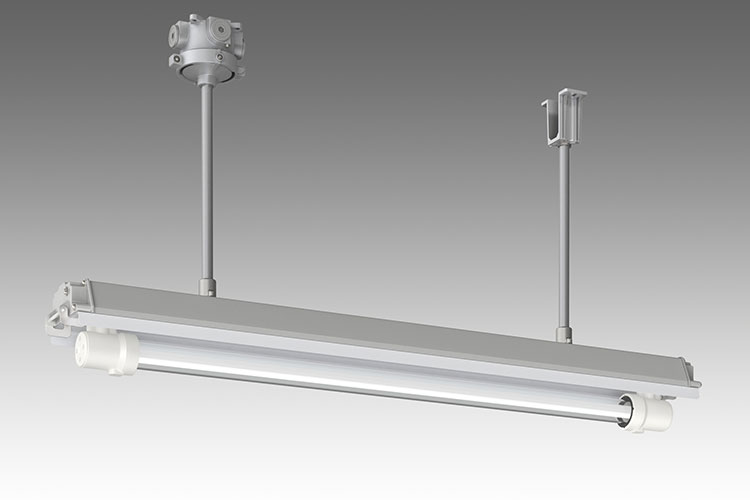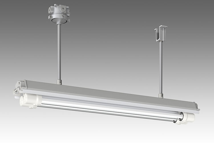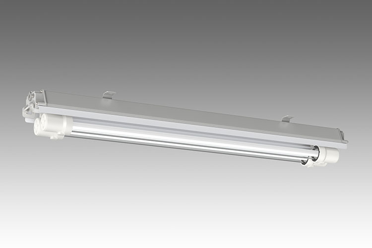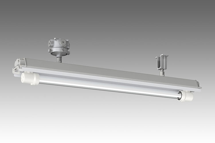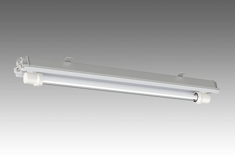 - 電源内蔵形直管LEDランプ(高演色)を防爆照明に採用。ランプと電源ユニットが同時交換できるため、照明器具を長期間使用できます。