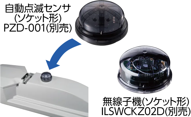 また、灯具上部にはセンサが取付可能なソケットを装備しました。
