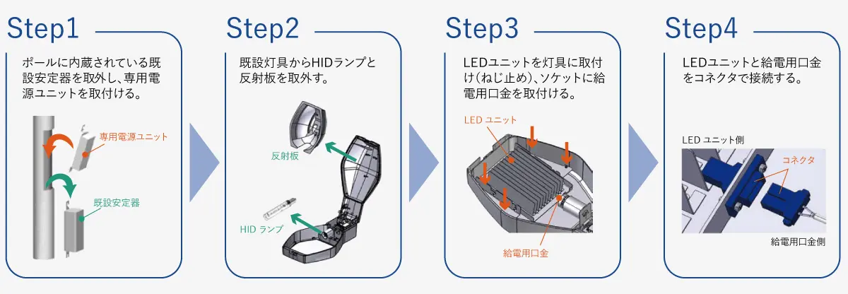 - 既設道路灯を簡単にLED化