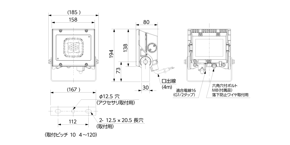 | 取付金具 | U字ボルト:ステンレス製 | U字ボルト:鉄(溶融亜鉛めっき) | (ポール・ポールトップ金具別) |