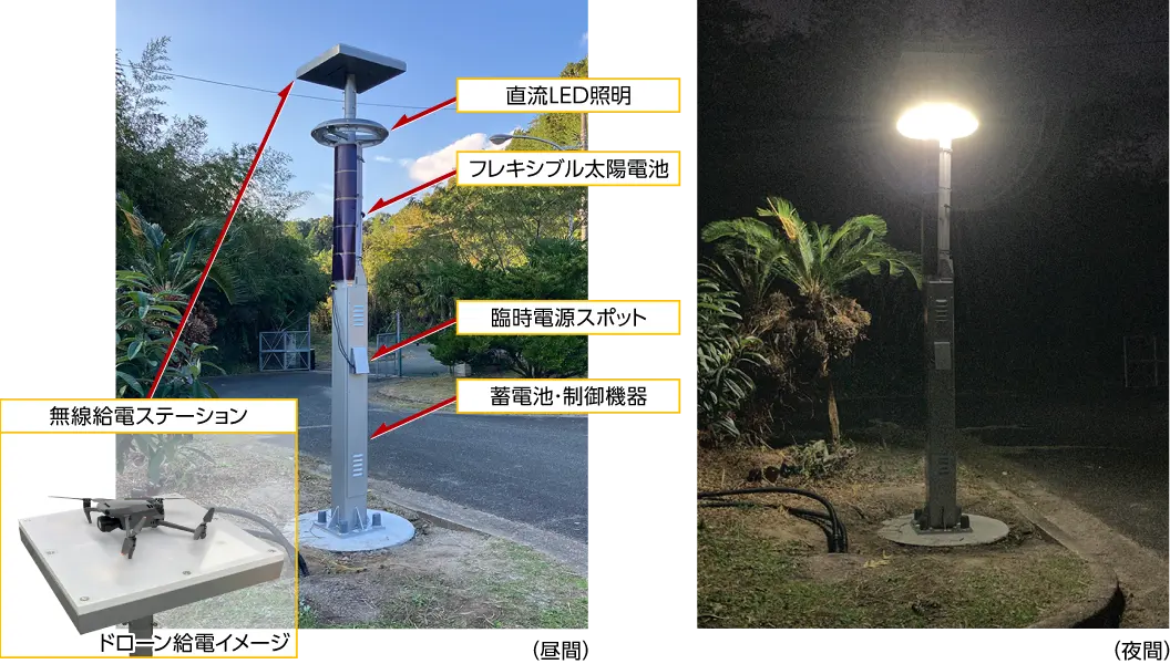 岩崎電気は、フレキシブル太陽電池や無線給電、直流LED照明を実装した「エネルギーポール」の実証実験を福岡県糸島市にて開始しました。