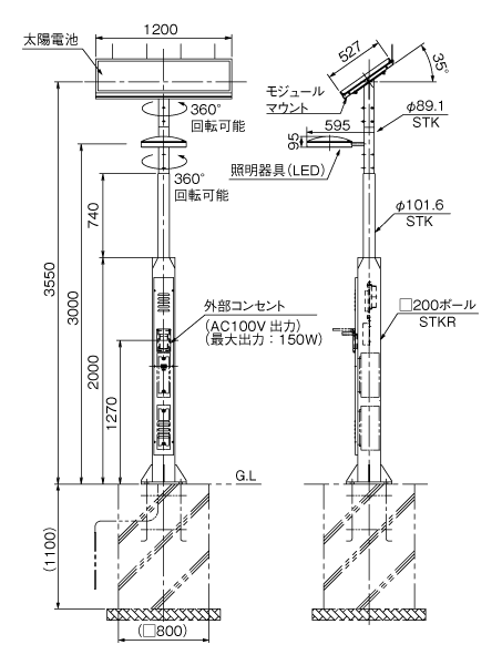 (一社)日本照明工業会が制定するJIL 5510(屋外用非常灯及びソーラーライト技術基準)※適合と、景観への調和に配慮したシンプルなデザインを両立しました。