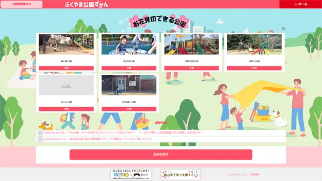 公園管理者間の連絡ツールをさらに発展して、一般利用者にも地域の公園に親しんでもらう工夫を盛り込んだウェブサイトを公開しています。