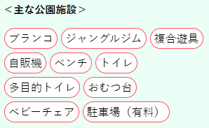 「おすすめ公園表示」「公園に関する最新のお知らせ」「公園を探す」のほか、公園の詳細ページでは、公園の写真・主な遊具、公園設備・関連情報などが表示されます。